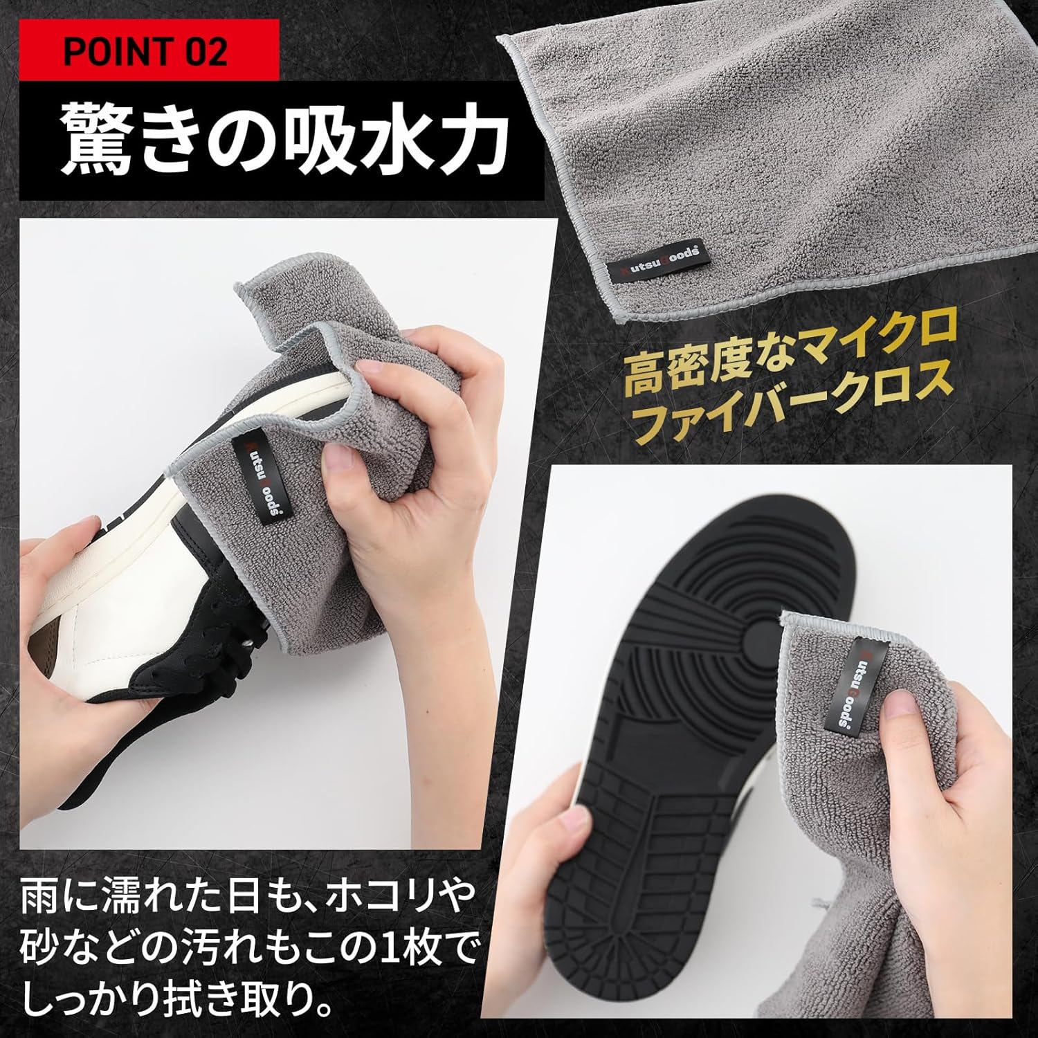 高吸水・速乾で汚れをしっかり拭き取る スニーカーや革靴のお手入れに最適な高密度マイクロファイバークロス。