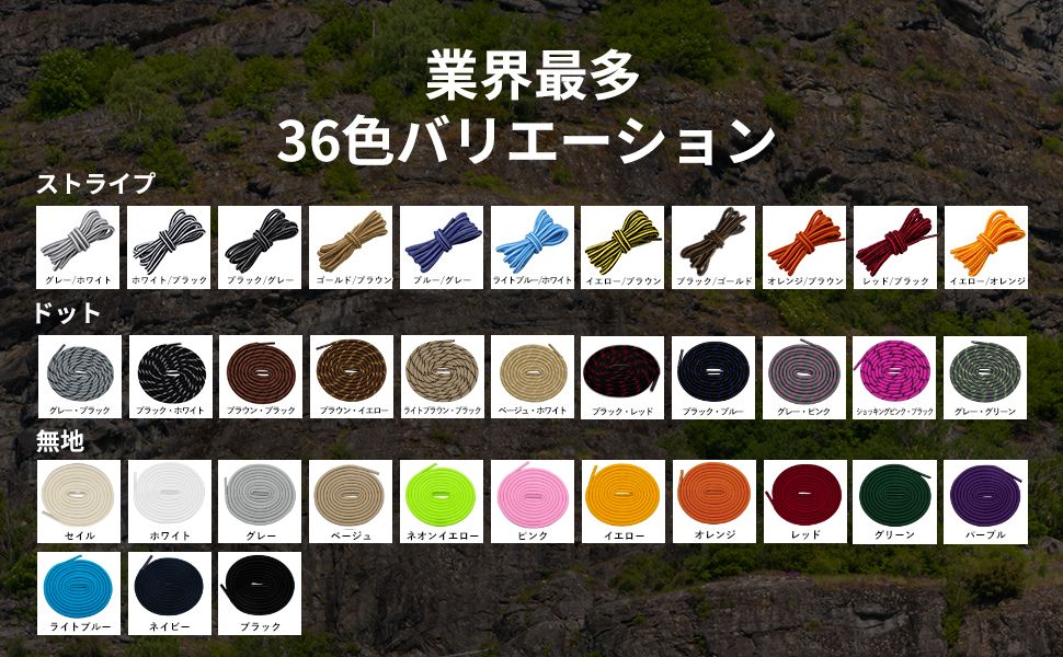◼️【選べる36カラー】丸型シューレース国内最多級の36カラーバリエーションからあなたにぴったりの色が見つかります。
