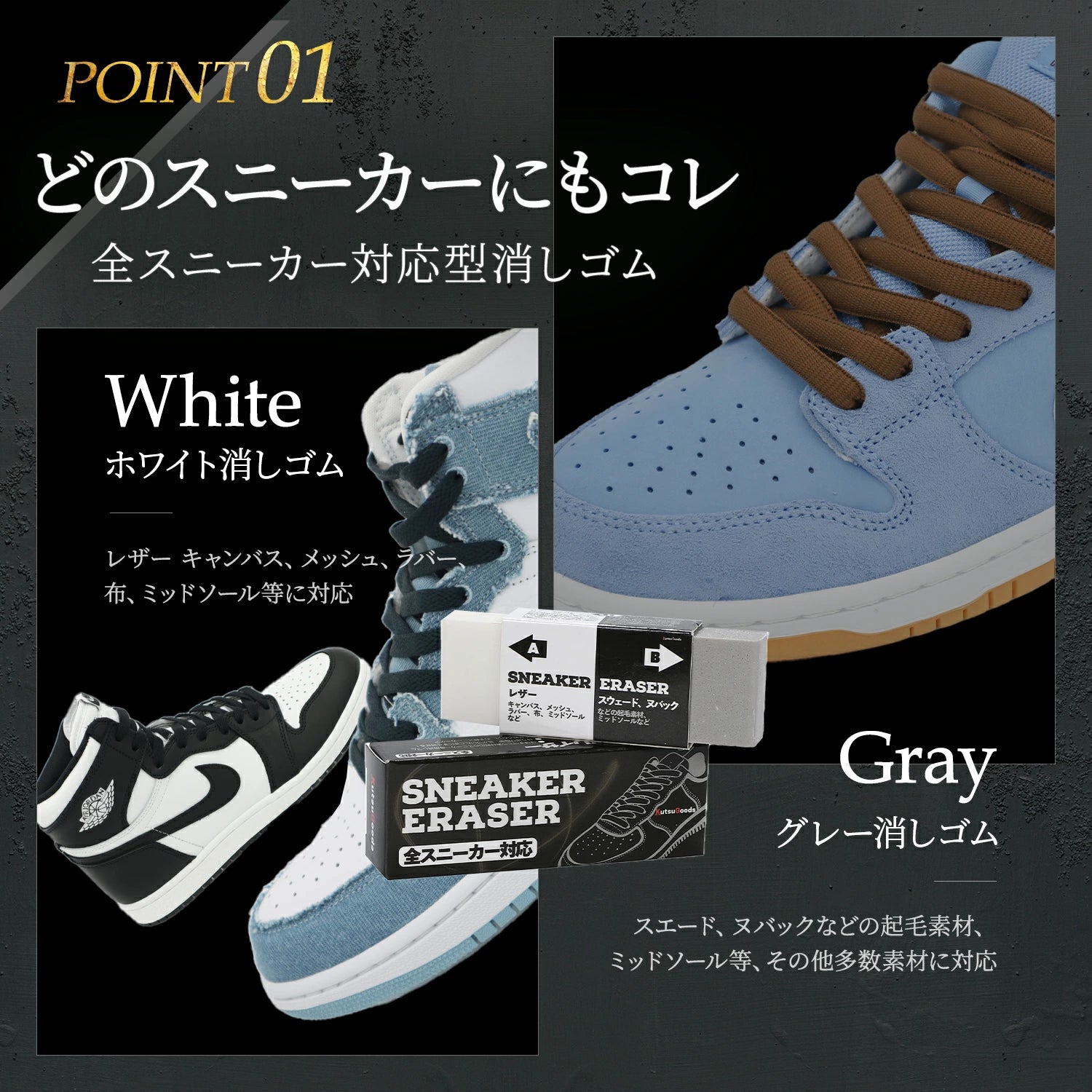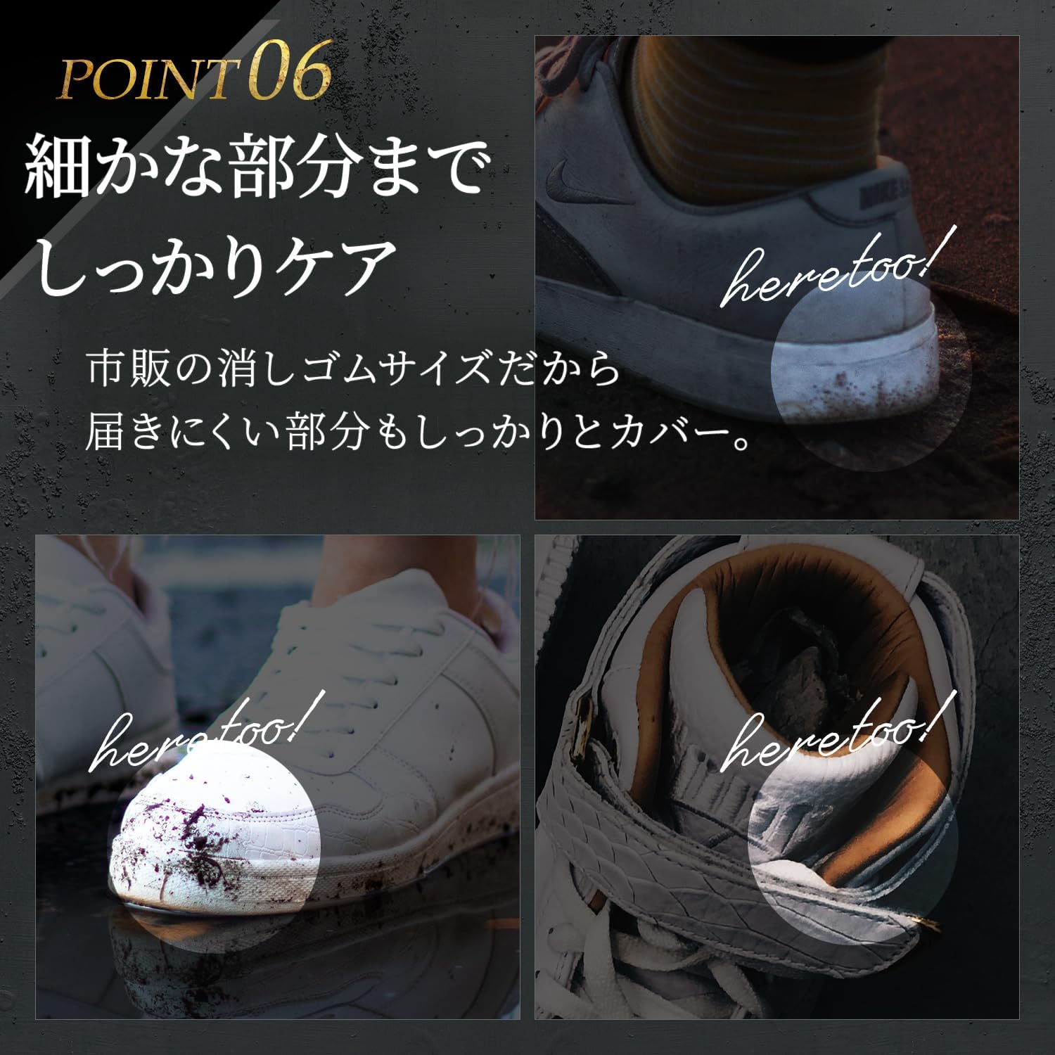 ゴム素材の特殊クリーナーで、スニーカーの細かな汚れや擦れをピンポイントで除去。